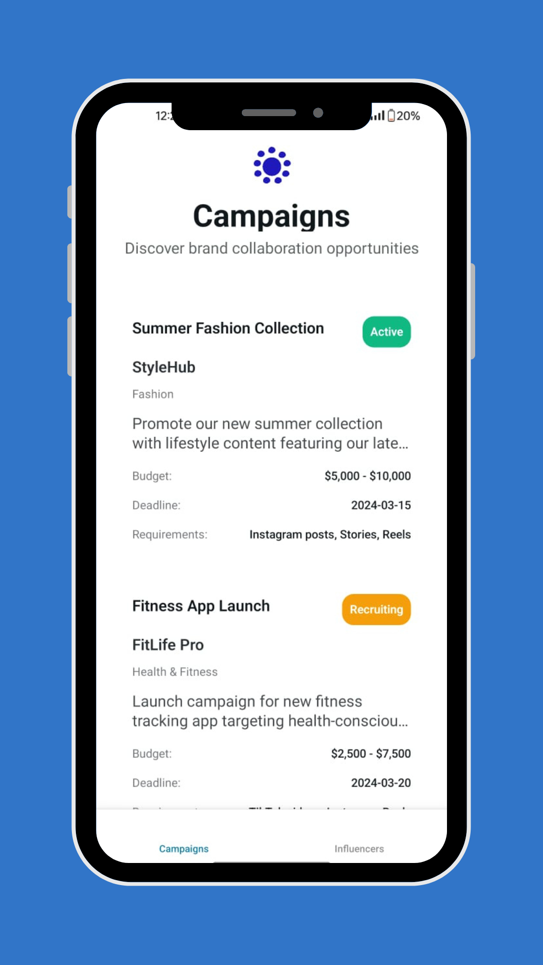 Monitor campaign performance, engagement rates, and ROI metrics in real-time with beautiful iOS charts.